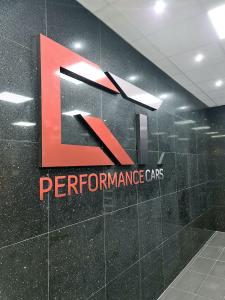 Logo skylt 120 cm x 5 cm djup Utskurna bokstäver på frigolit med topp av plexi
