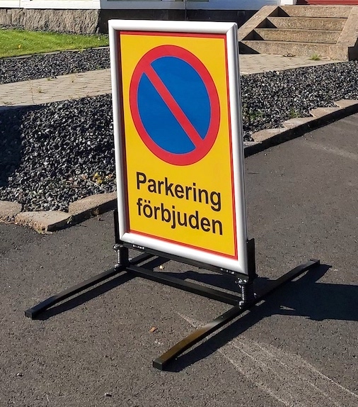 Gatupratare-Trottoarpratare Wind Sign 70x100 cm med fjäder färg svart med Monterad Folie INGÅR I PRISET ! Parkering förbjuden på 2 sidor snyggt & hållbart !